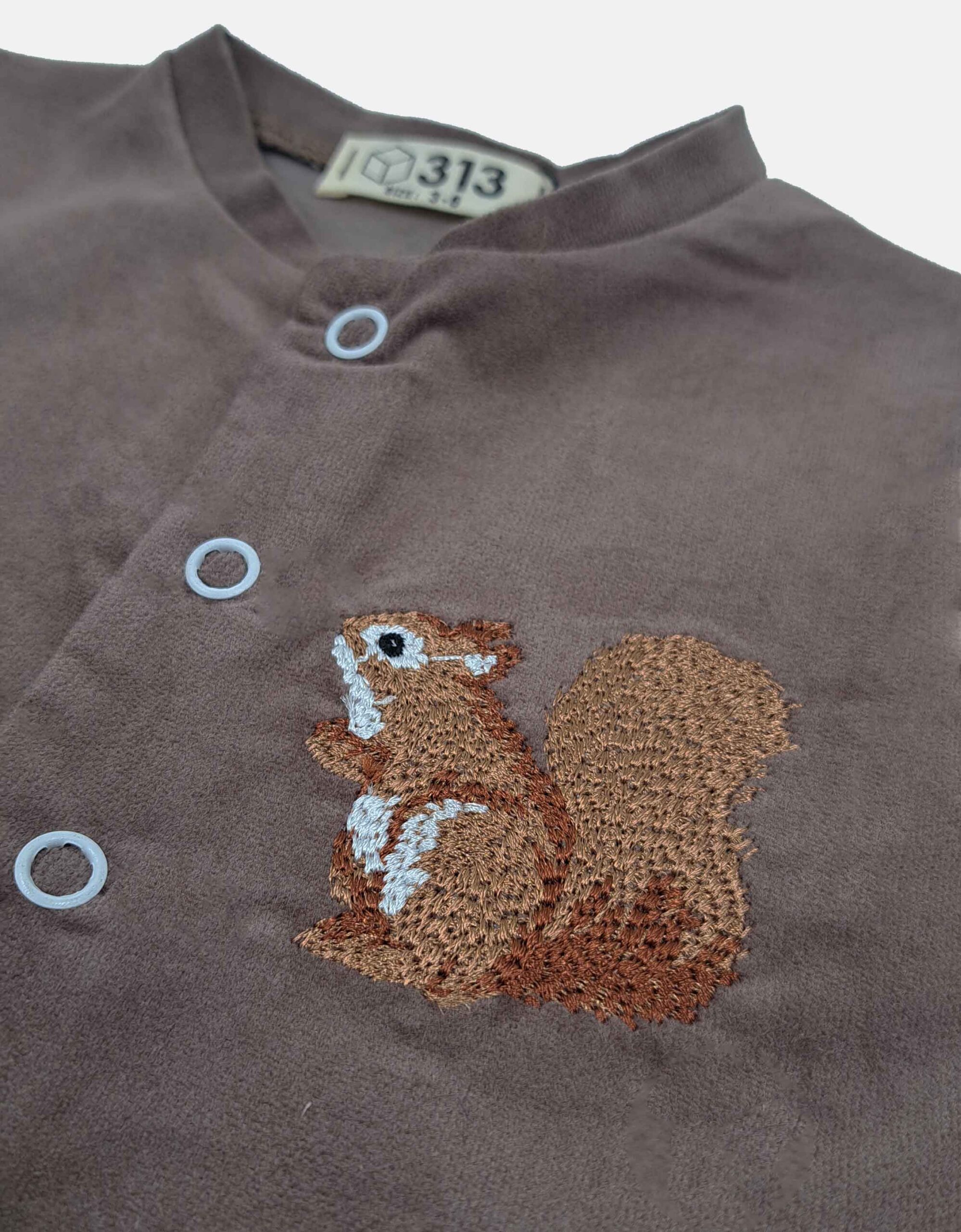 این مدل از لباس بچه گانه با جنس مخمل لطیف، طراحی فانتزی سنجاب و دوخت دقیق،