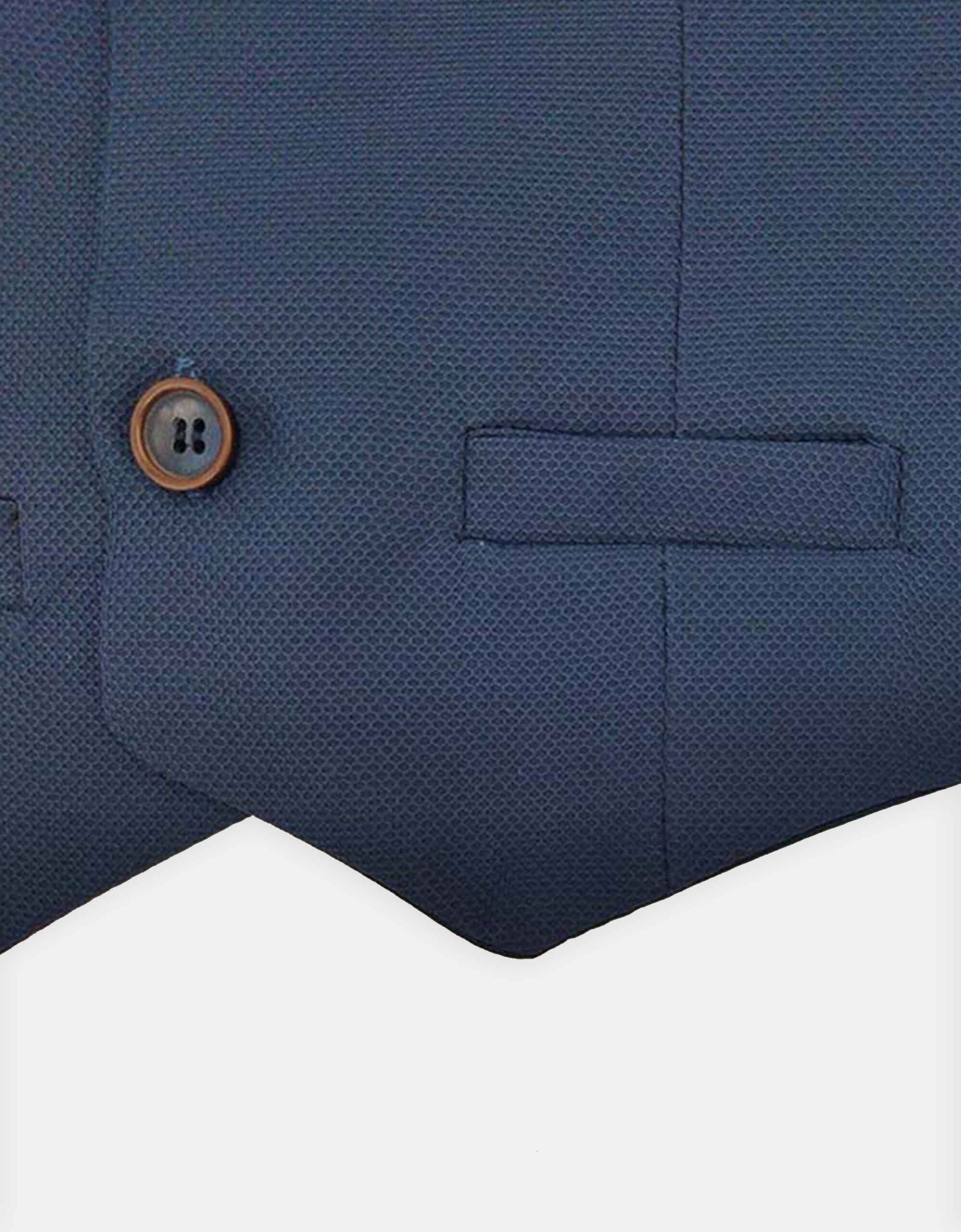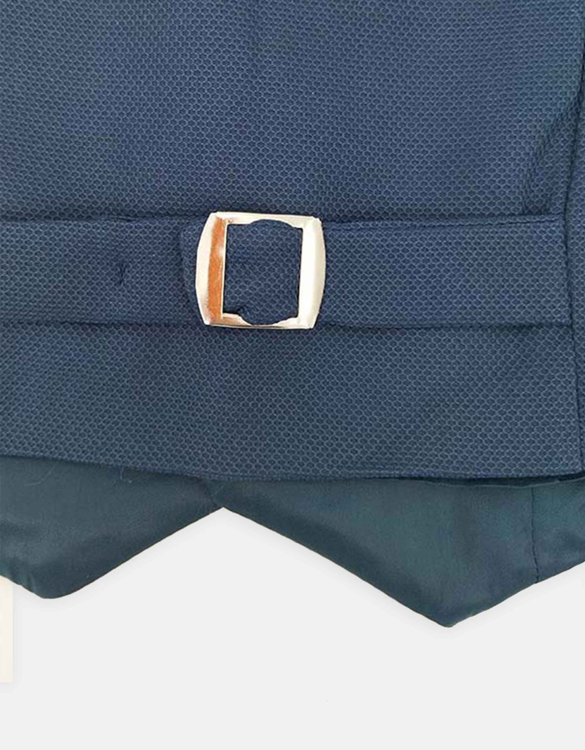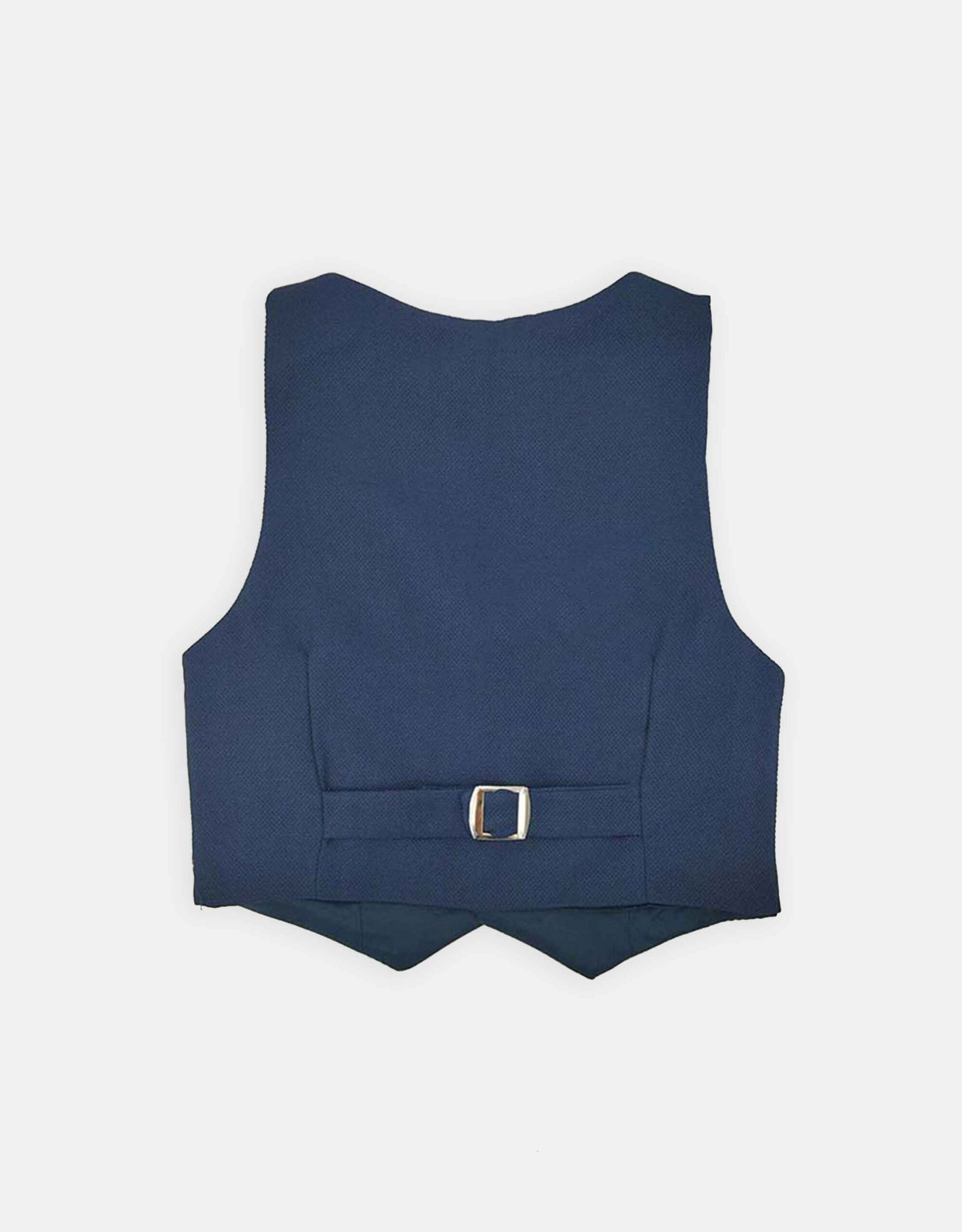 رنگ سرمه‌ای و فرم کلاسیک جلیقه باعث می‌شود این ست برای مراسم رسمی،