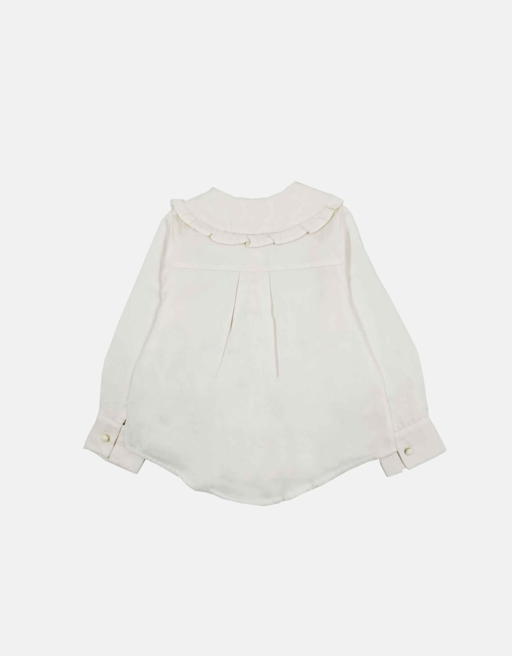 شومیز دخترانه یقه ب ب ریما با طراحی خاص، رنگ شیری جذاب و دوخت ظریف، انتخابی ایدهآل برای دختران ۳ تا ۱۳ سال است.